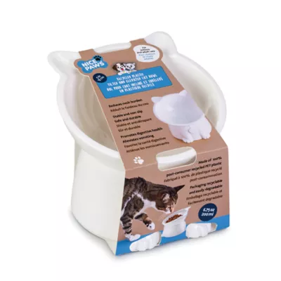 Nice Paws Recycled Plastic Titled and Elevated Cat Bowls feature a non-slip design that reduces spills and the messes that come with them. They are also made of 100% recycled plastic material.