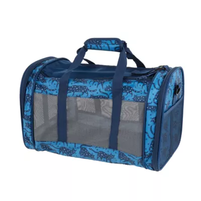 This Whisker City Blue Cat Print Soft-Sided Cat Carrier makes it easy to transport your cat in comfort and style. This carrier makes it easy to load your kitty, and places an emphasis on pet comfort and stress-free travel. It also features a fun cat-centric design you will love. Only at PetSmart.
