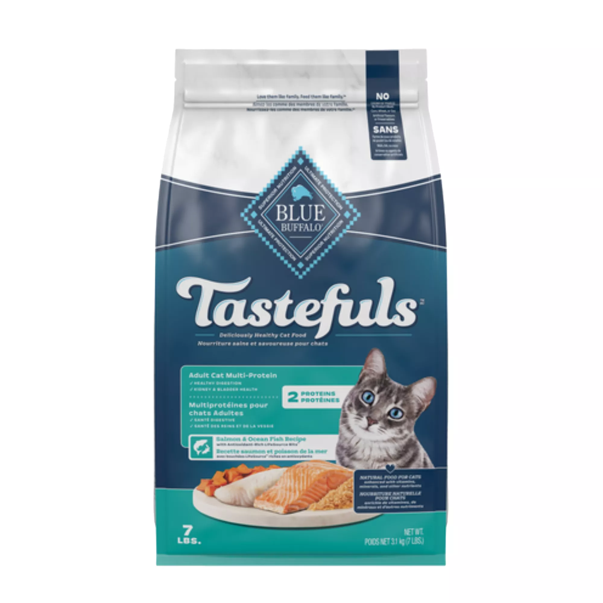 BLUE TASTEFULS Multi-Protein Adult Dry Cat Food - Salmon & Ocean Fish 7lbs