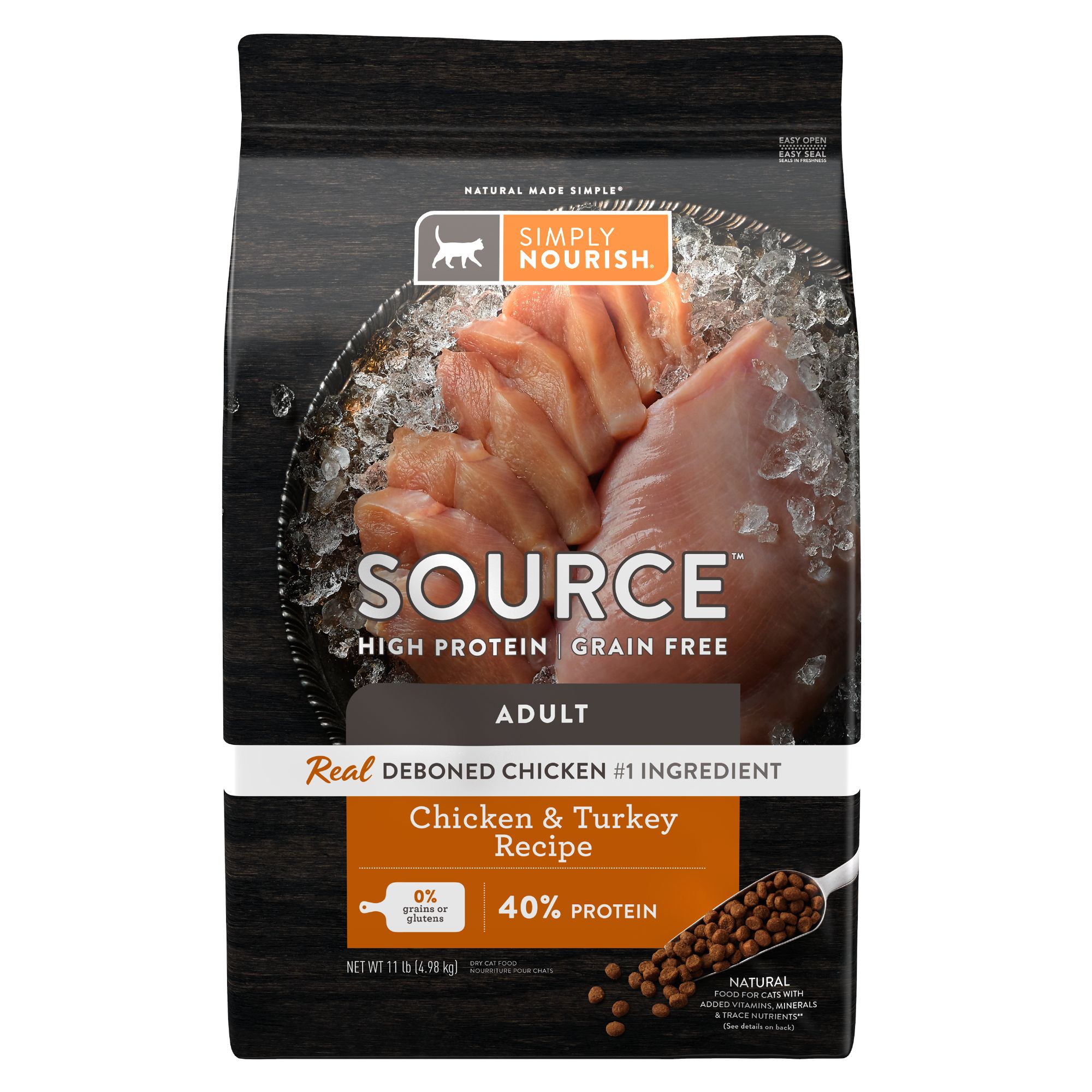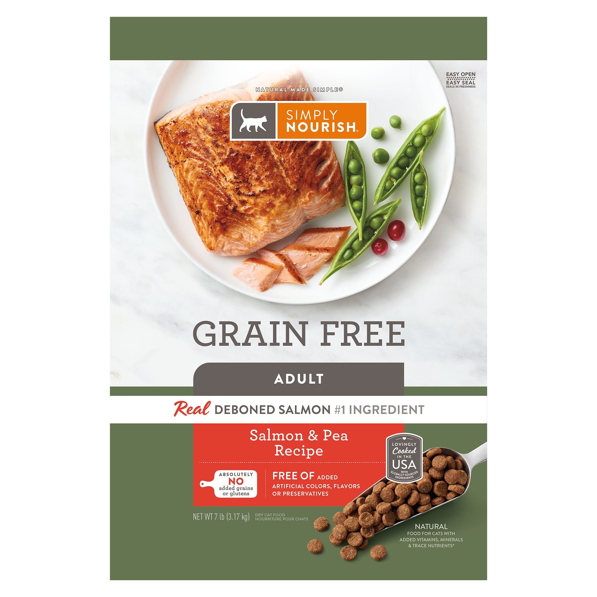 Simply Nourish Source Salmon Recipe Indoor Adult Cat Food contains optimal calories from protein and fat to help maintain a healthy weight and ideal body condition. Feed your cat's well-being and support overall health with this delicious dry blend.