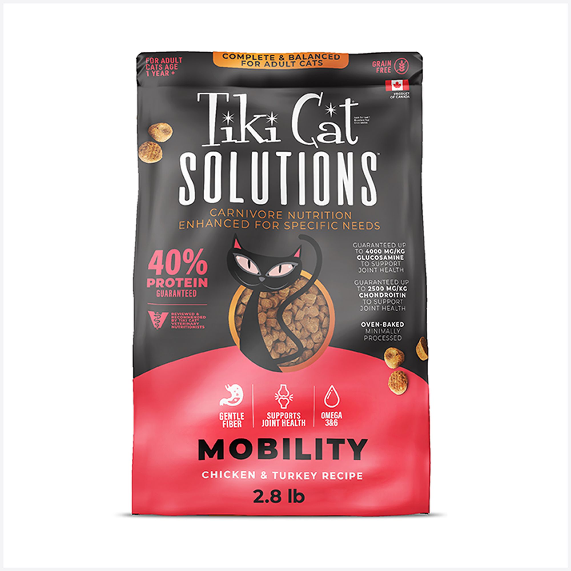 Features & Benefits: Complete & Balanced Reviewed & Recommended by Tiki Cat® Veterinary Nutritionists40% Protein Guaranteed Supplemental Biotin & Zinc Maximize Nutrient Value2 Sources of Fish, Salmon & Herring for Balanced Omega Levels Oven–Baked, Minimally Processed Omega 3 & 6