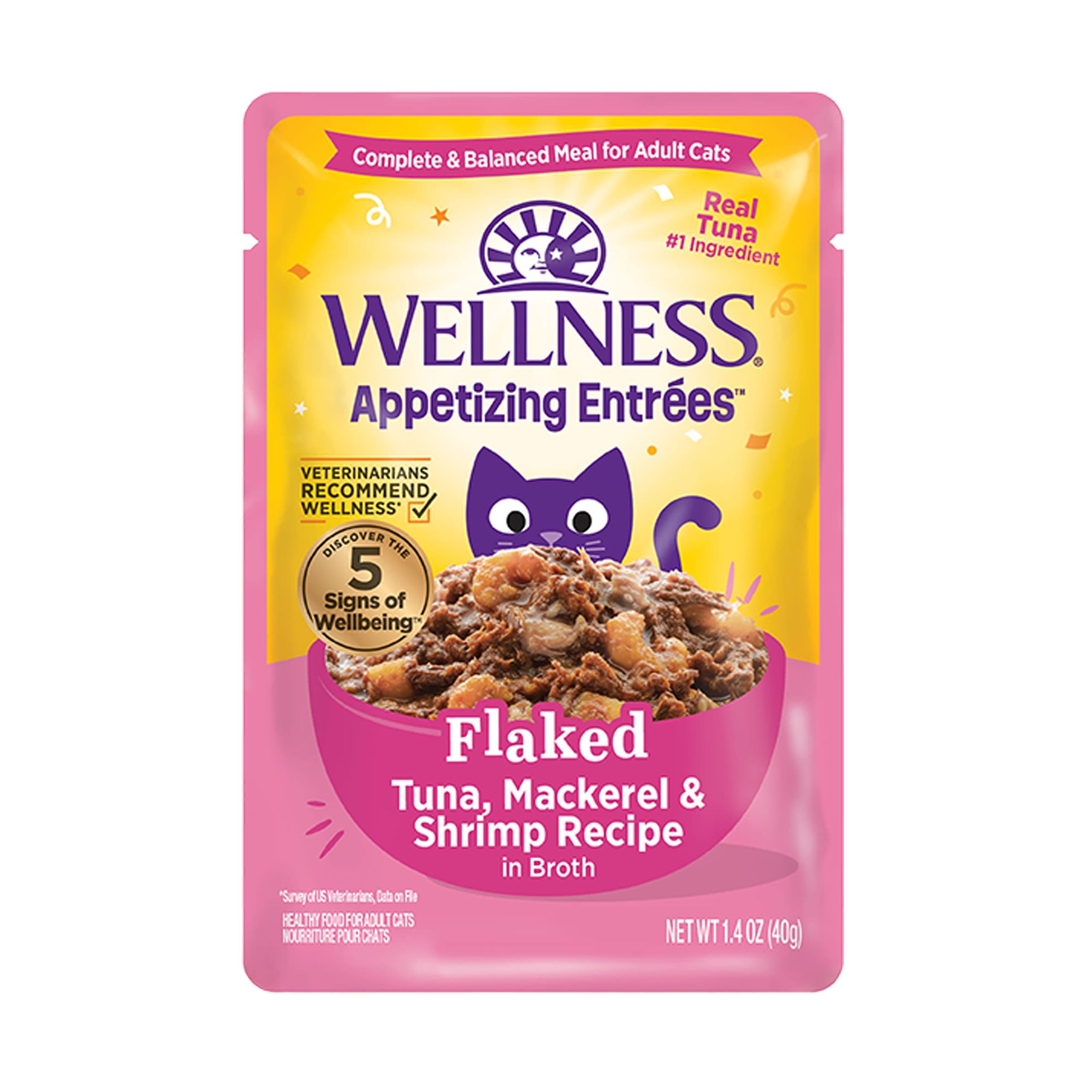 Ingredients: Tuna, tuna broth, canola oil, salmon, powdered cellulose, calcium lactate, tuna oil, xanthan gum, taurine, tricalcium phosphate, potassium chloride, choline chloride, salt, calcium sulfate, thiamine mononitrate (vitamin B1), vitamin E supplement, ferrous sulfate, niacin (vitamin B3), zinc oxide, vitamin A supplement, biotin, vitamin B12 supplement, manganous oxide, calcium pantothenate, riboflavin supplement (vitamin B2), copper amino acid chelate, menadione sodium bisulfite complex (source of vitamin K activity), pyridoxine hydrochloride (vitamin B6), folic acid, potassium iodide, vitamin D3 supplement.