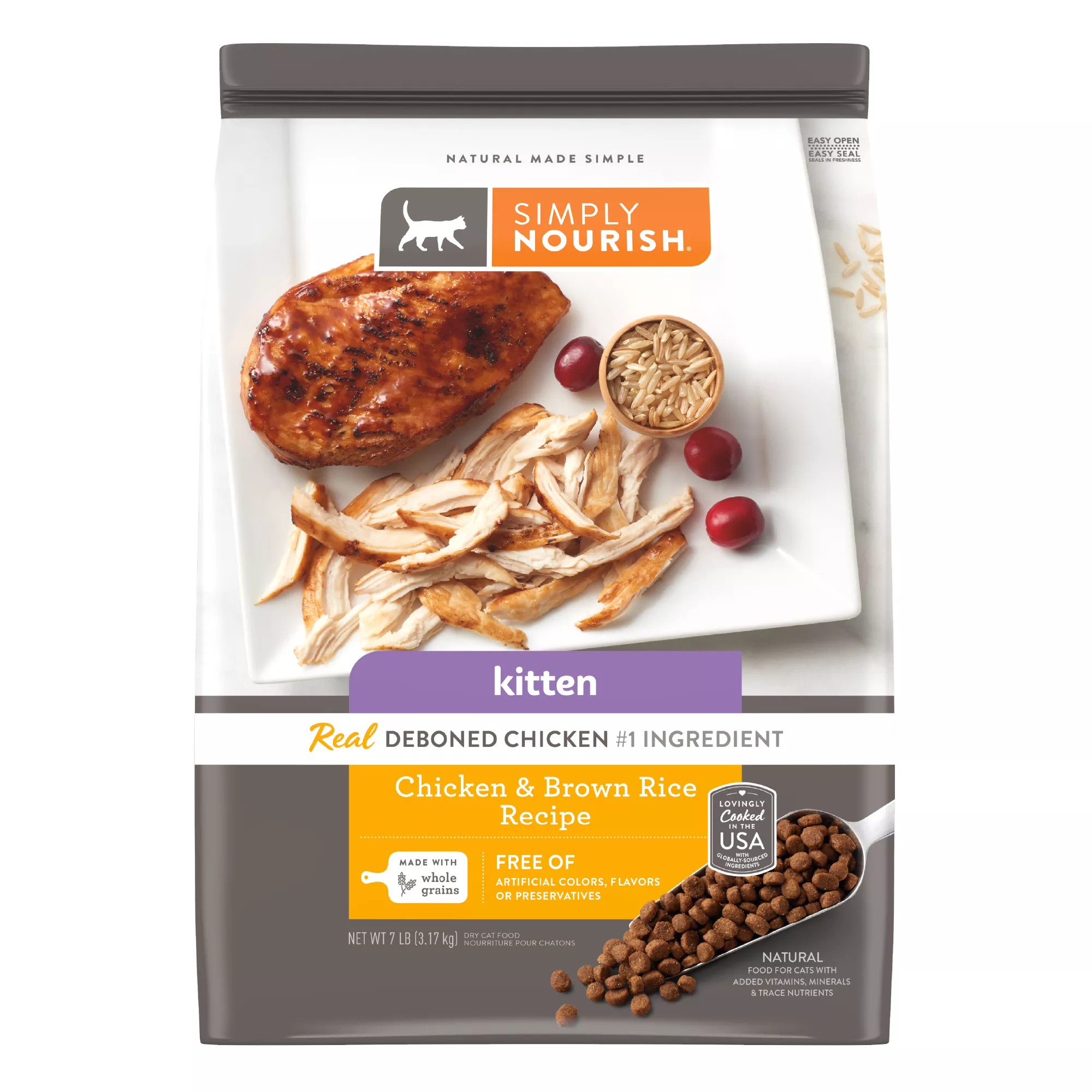 Simply Nourish® Original Kitten Cat Dry Food - Chicken & Rice, Natural, With-Grain