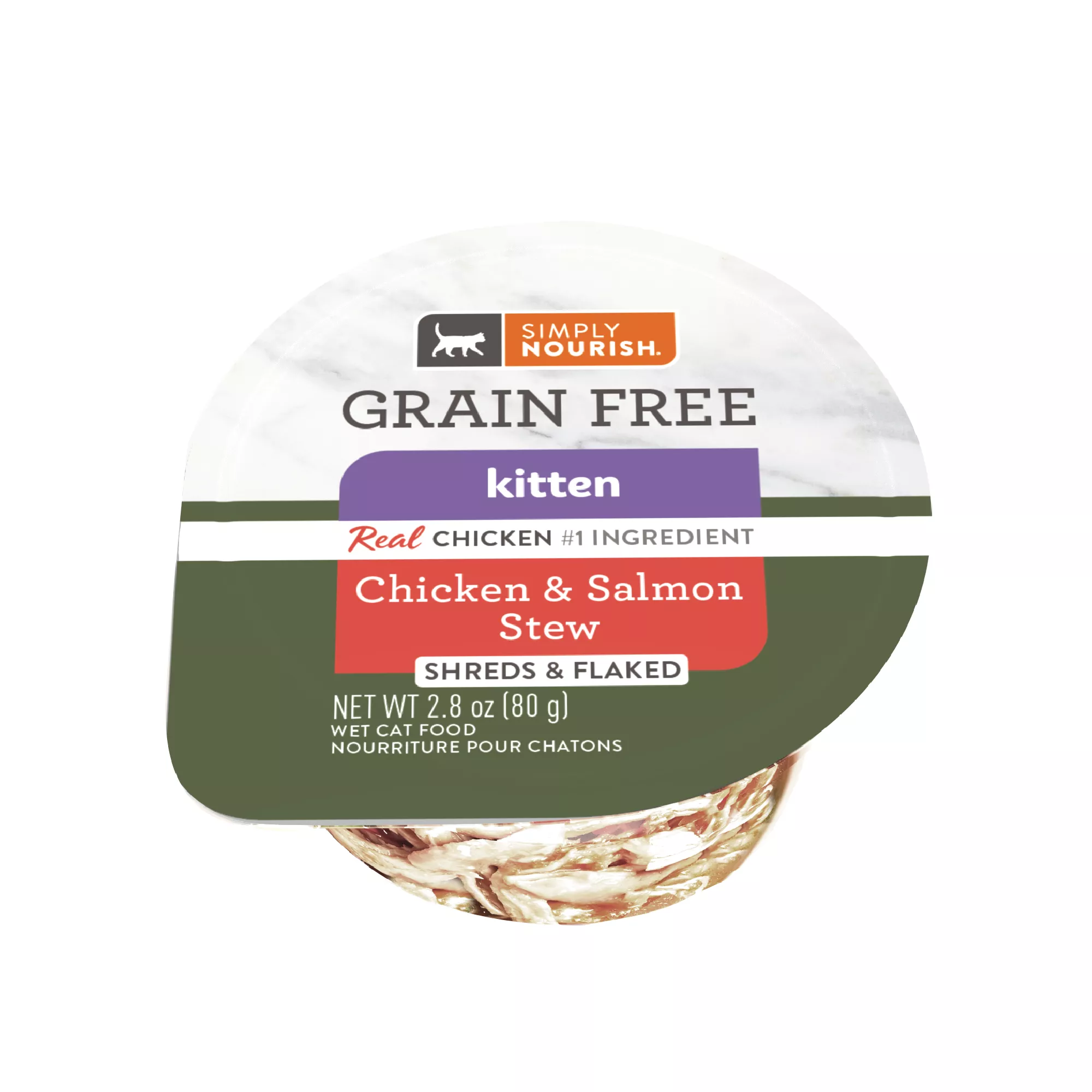 Simply Nourish Cat - Kitten, Wet Food, Stew, Grain Free, Chicken, Salmon, 2.8 OZ