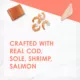 A variety of high quality gourmet cat food, from tantalizing pate Cod, Sole & Shrimp Feast, scrumptious pate Salmon & Shrimp Feast and savoury grilled Salmon & Shrimp Feast.