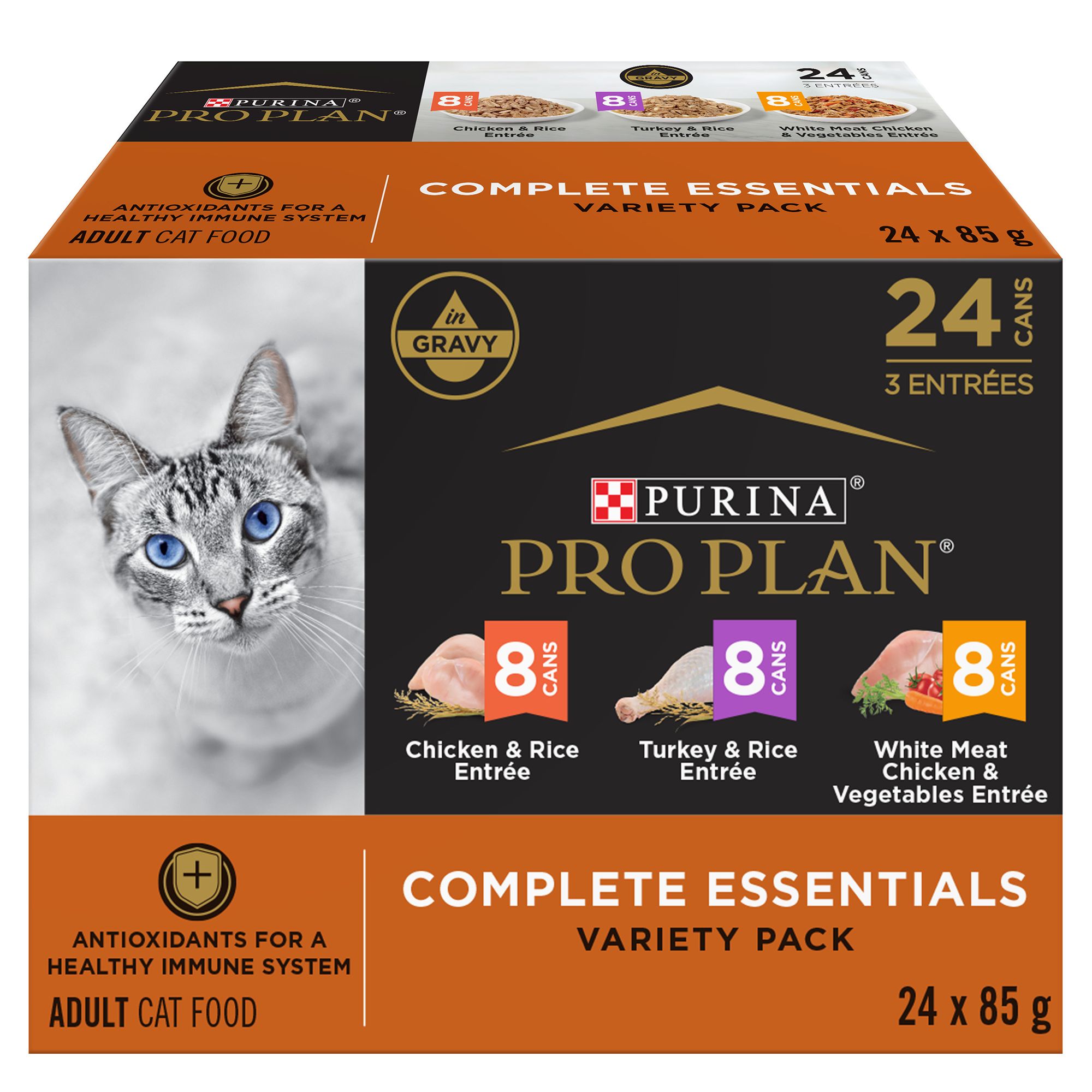 This variety pack contains 6 cans each of Sensitive Stomach & Skin Tuna & Vegetable and Sensitive Stomach & Skin Chicken & Vegetable Entree Cat Foods. Your cat will love the taste & soft, smooth texture of these delectable entrees. This product is gentle on stomachs, nourishes skin and promotes a lustrous fur.