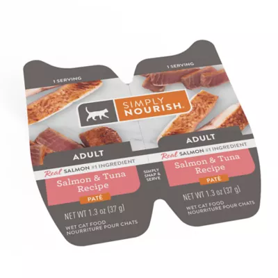 Simply Nourish® Salmon & Tuna Recipe Adult Paté Cat Food gives your kitty a truly delicious option at mealtime. This scrumptious salmon and tuna pate will have your kitty running for her food bowl for two great flavors cats love. Only at PetSmart.