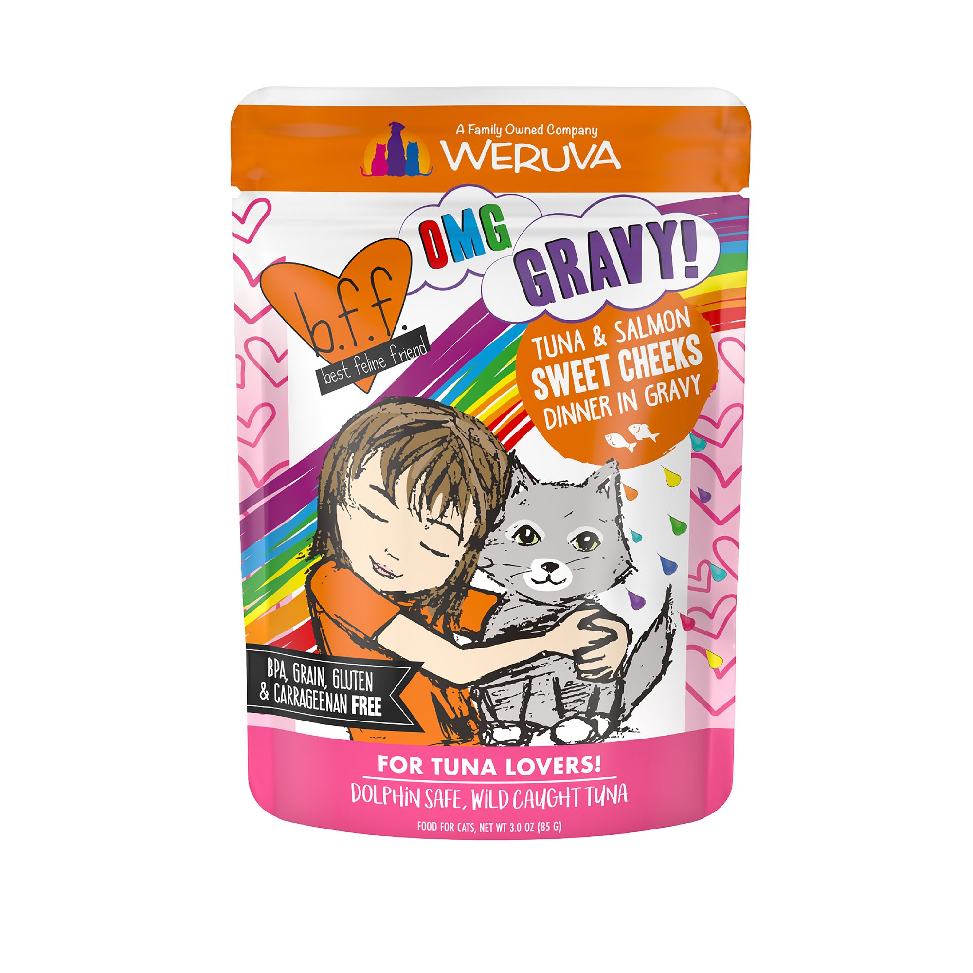 B.F.F. OMG GRAVY! for Tuna Lovers is made with high quality red meat tuna for the tastiest recipes yet. Choose from recipes that contain tuna with a mixture of a land or sea protein, like cage-free chicken or grass-fed beef for more flavor. Featuring extra gravy, these formulas are purrfect for cats that love to lick! Oh, my gravy indeed!