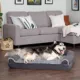 Features: COMFORT AS PRIORITY: The sofa–style design creates a cozy and inviting space that promotes comfort and security; designed with supportive bolsters for dogs to rest their heads on for optimum lounging comfort. SLEEP SURFACE: Featuring a cuddly soft plush faux fur main sleep surface and thick fluffy bolsters wrapped in easy–care suede; both are gentle on noses and paws for enhanced snuggling and burrowing comfort. EASY ON JOINTS: The egg crate orthopedic foam base helps cushion pressure points and improve air circulation, while fluff–filled bolsters support the neck, back, hips, and joints; helps ease discomfort and promote restful sleep. PRODUCT DETAILS: Orthopedic Dog Bed, Stone Gray; – 40" x 32" x 8" IMPORTANT: Not suitable for pets with excessive teething or destructive chewing behavior. EASY CARE: The removable dog bed cover is completely machine washable; for more specific cover and foam care instructions, please refer to the hang tag and/or seam label if applicable