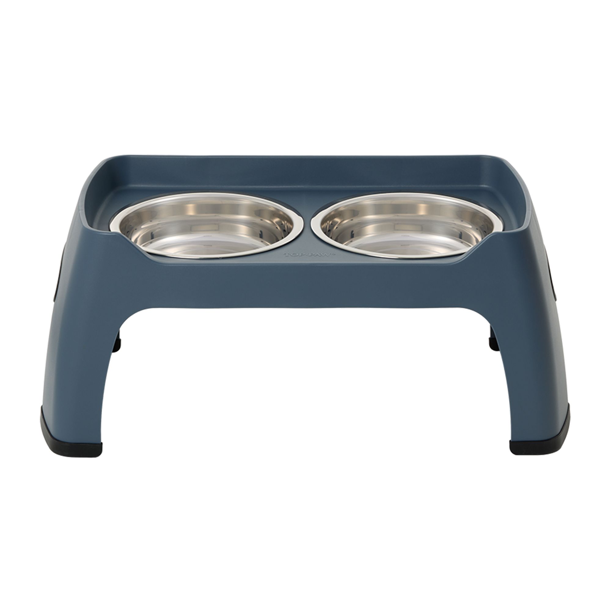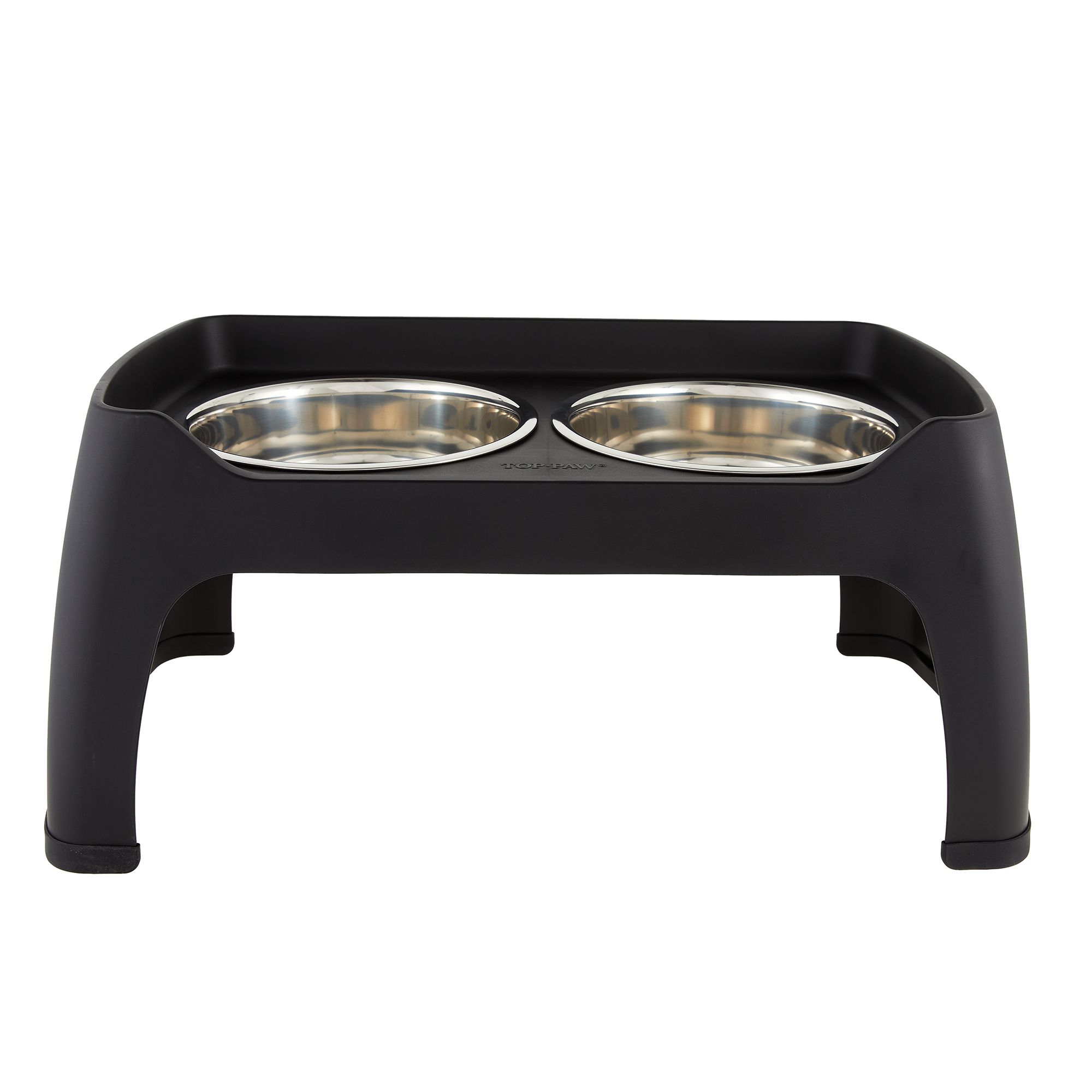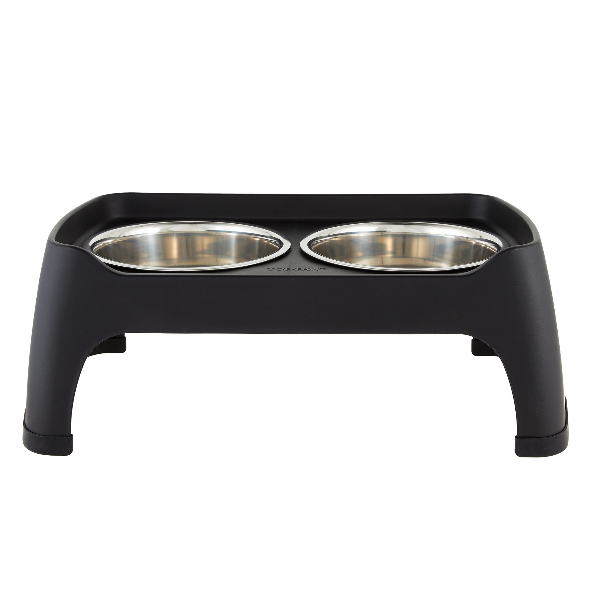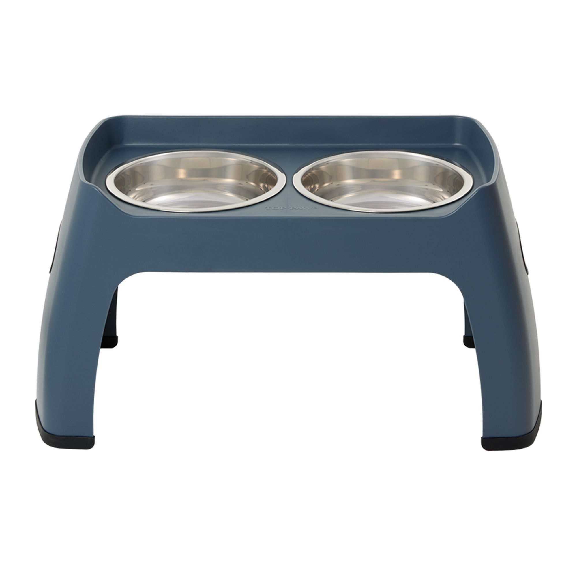 This Top Paw Grey Stone Top Metal Leg Stand with Double Dog Bowls is the perfect choice to keep your pup fed and watered. This great-looking elevated stand is made of stone with metal legs, and comes with two bowls for food and water. Elevated dog bowls make for better digestion, and this stylish stand will look great sitting in place. Only at PetSmart.