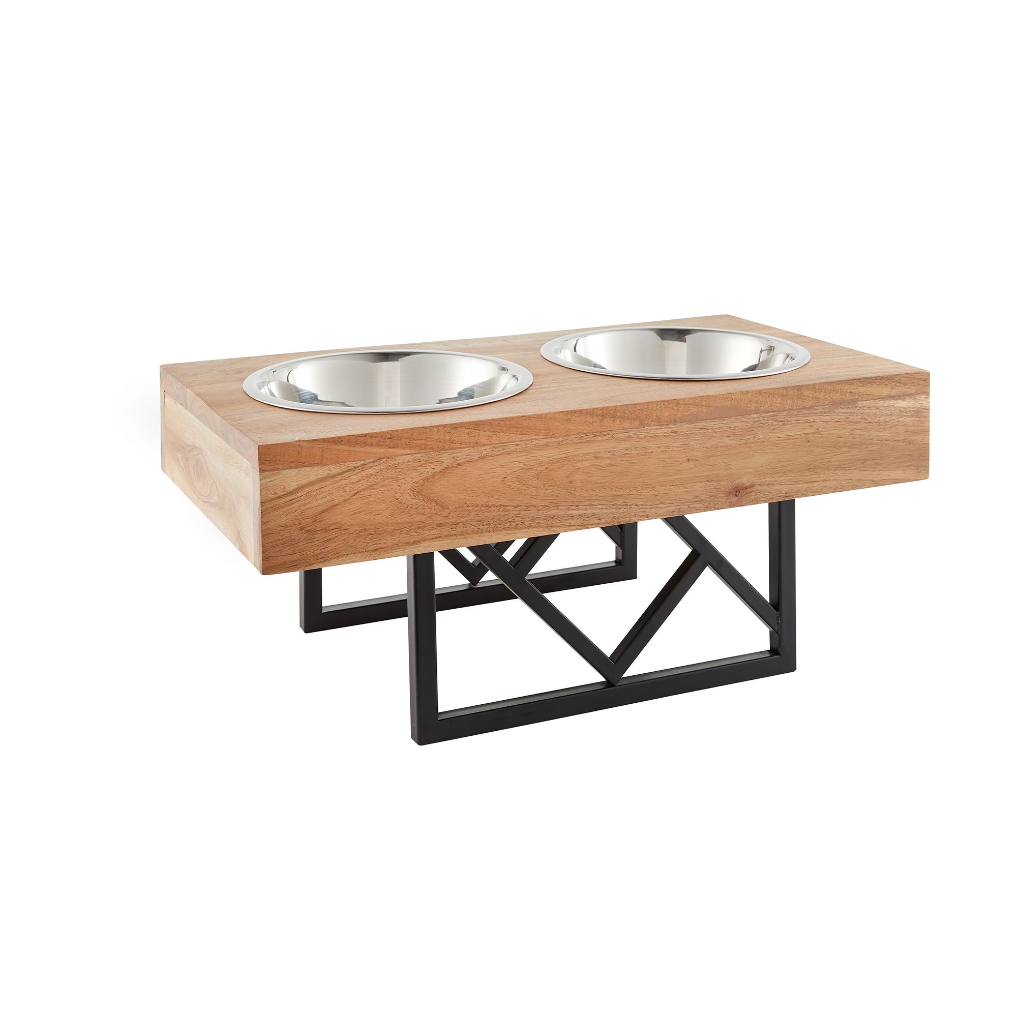 Includes: Stand with two dog bowls