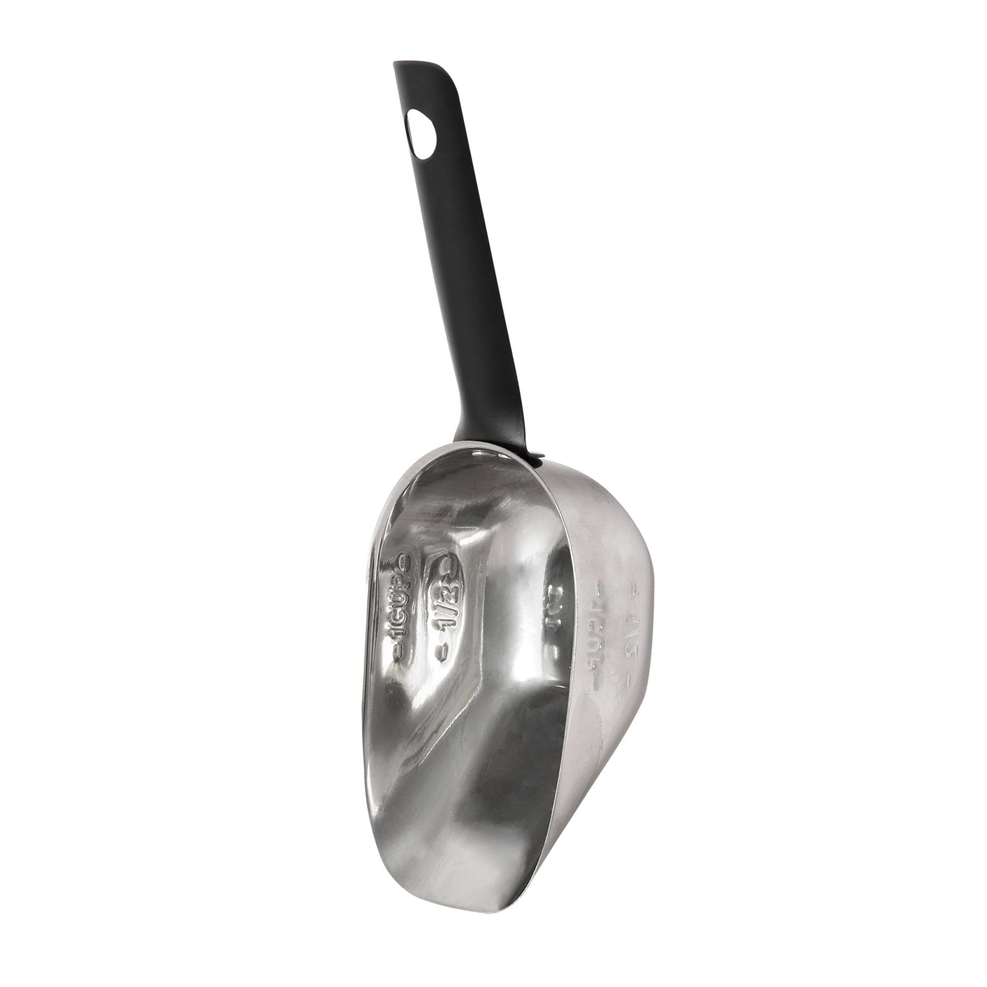 The Petmate® Pet Food Scoop is a durable plastic food scoop made with Microban antimicrobial protection o help prevent the growth of mold; mildew; and other bacteria that could ruin your pet's food. The strong; long handle makes it easy for you to scoop and is designed to hold up under the weight of your pet's food. To help with accurate portion control; the Petmate Pet Food Scoop includes molded-in indicator lines that make it easy for pet parents to manage the amount of food you put in your pet food bow. Made proudly in the USA; and made with 25% recycled content making it an eco-friendly option. Cat/dog food scoop capacity is 2 cups.