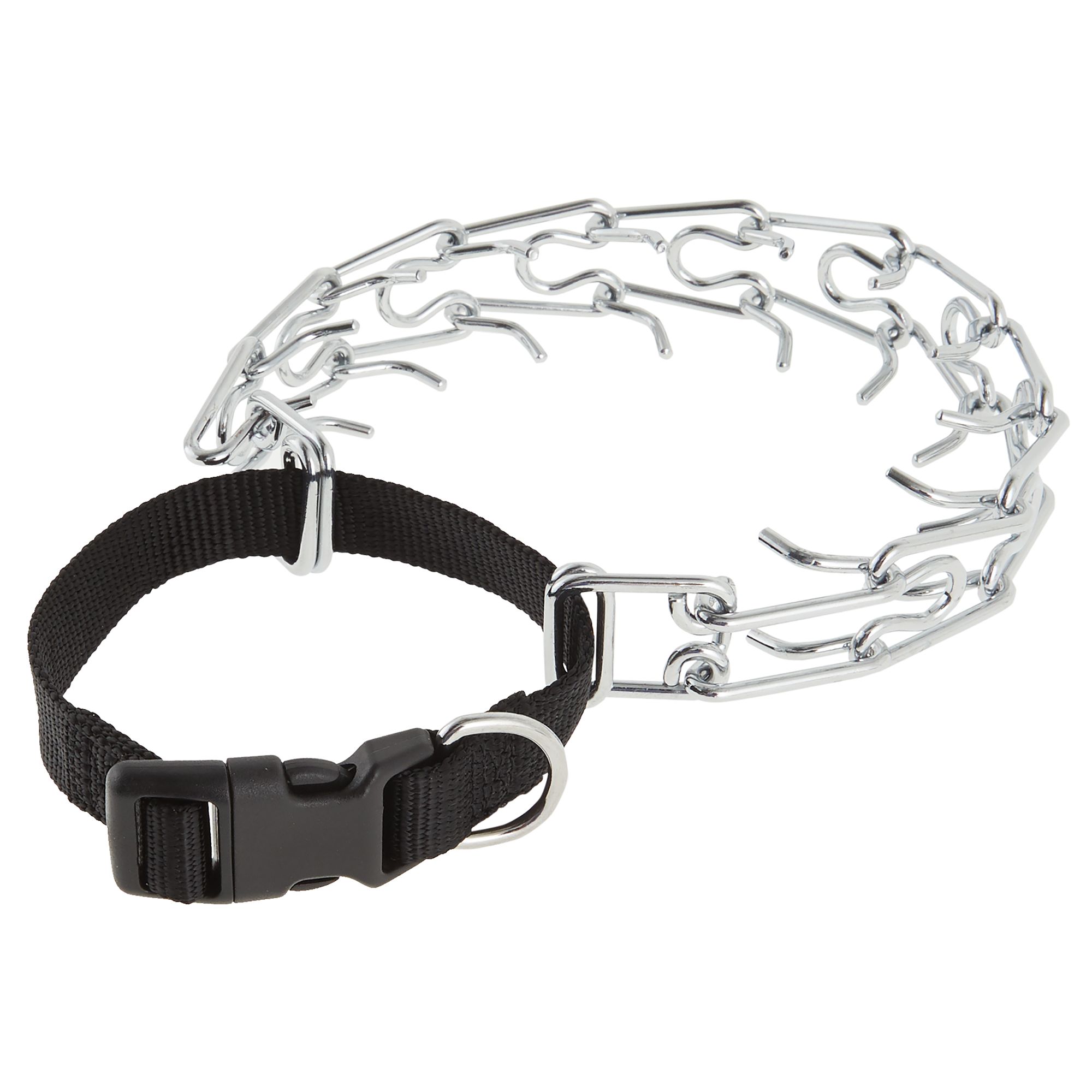Train your dog to walk on a lead in easy and highly effective fashion using the Top Paw Quick Release Prong Training Collar. This collar features an easy-to-use one-hand release and distributes correction pressure evenly around your dog's neck. Fully adjustable for optimal comfort, it is proven to be an effective training device. Only at PetSmart.