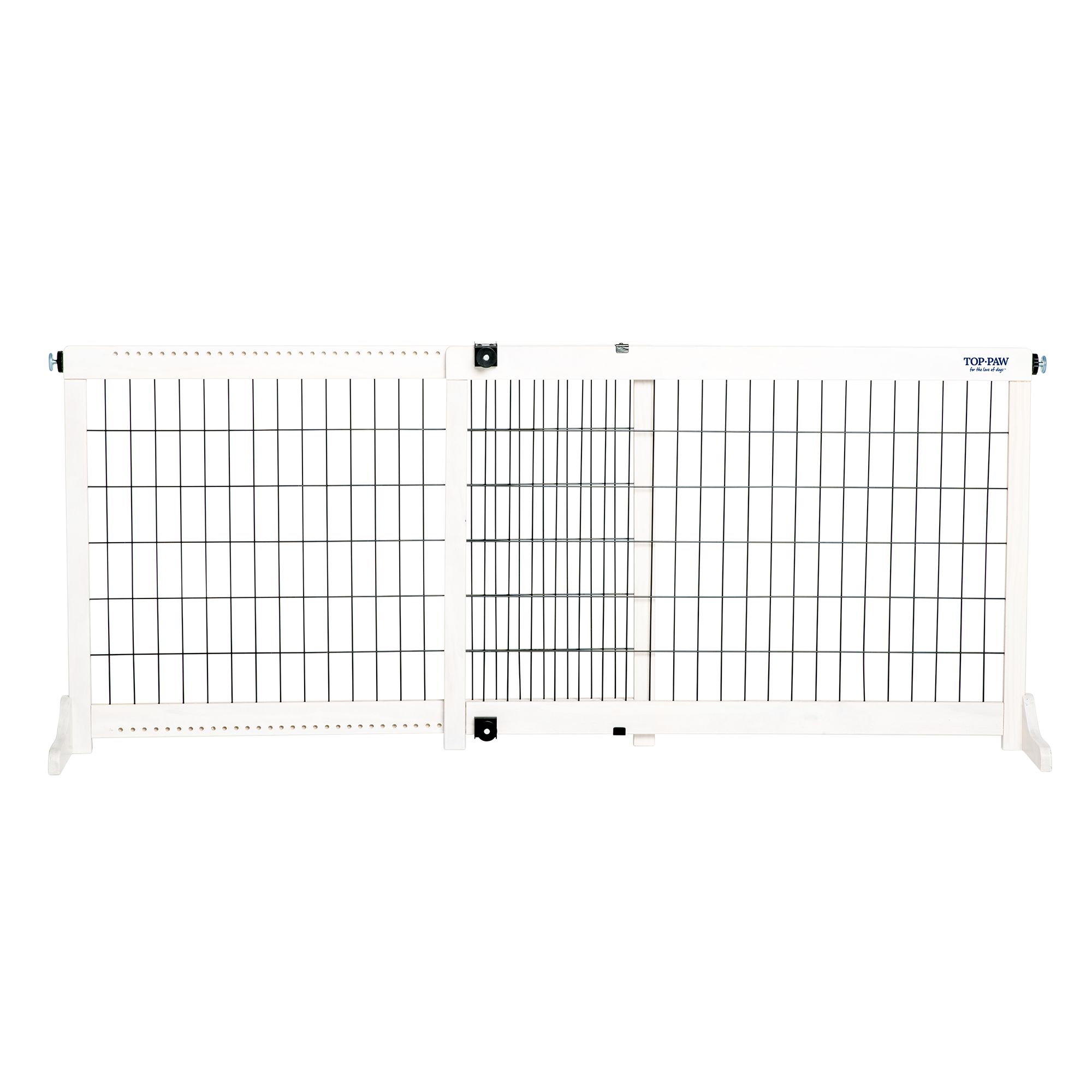 This Top Paw Expandable Plastic Pet Gate easily adjusts to fit a variety of openings, providing the boundaries you desire for your dog. Just use the twist knob to secure the gate to the wall of your choice, and count on this durable gate with its step-over design to keep your dog securely in the area of your home you desire. Only at PetSmart.