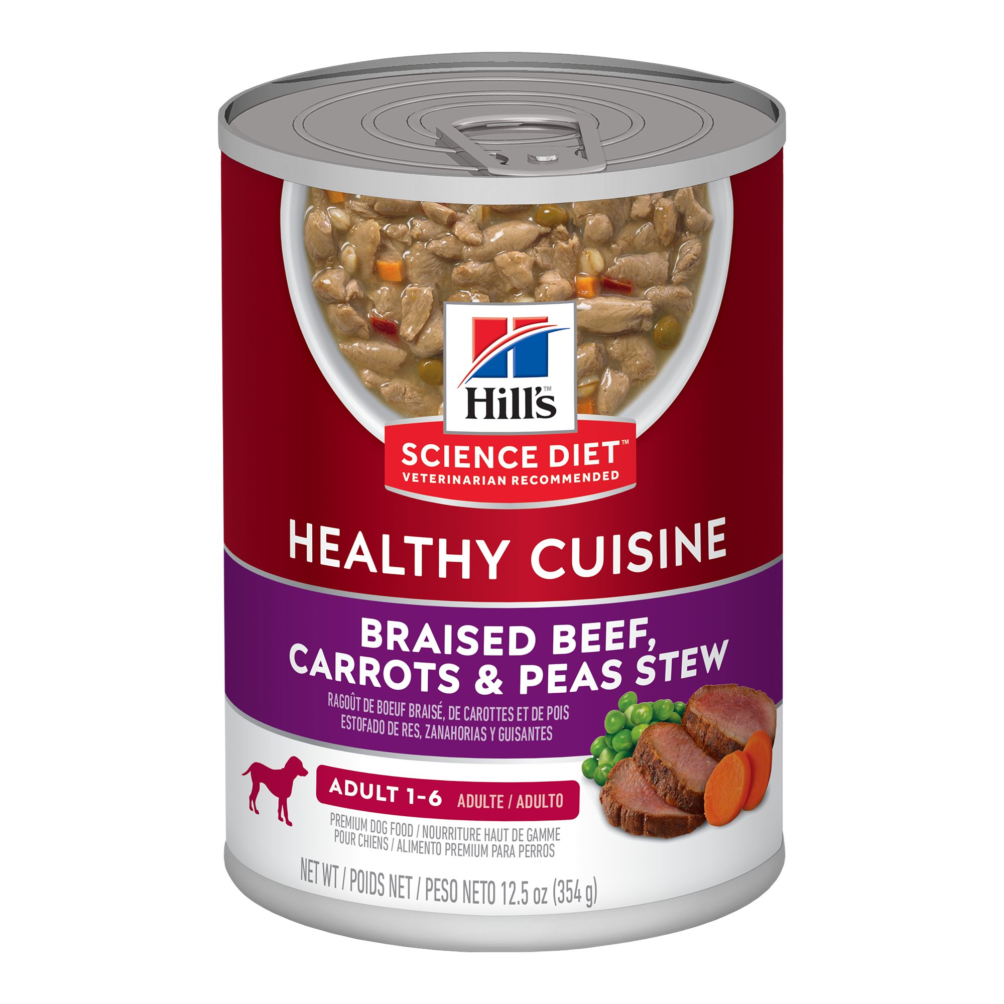 Hill's Science Diet Adult Healthy Cuisine Roasted Chicken, Carrots & Spinach Stew combines the delicious flavors of roasted chicken and tender vegetables in a succulent stew. This canned dog food offers the perfect balance of taste and nutrition for your dog, and supports healthy immune system, digestion, lean muscle & beautiful coat in adults 1-6. It also includes high-quality protein for lean muscles, is made with purposeful ingredients for a flavorful, nutritious meal, offers controlled levels of sodium and Phosphorous to help maintain kidney and heart health, and is easy to digest as well. Clinically proven antioxidants, Vitamin C+E promote a healthy immune system, while Omega-6 fatty acids & Vitamin E make for a beautiful skin & coat. Pair this mouth-watering stew with Hill's Science Diet Dry food to indulge your dog in tail wagging delight.