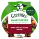 - Contains one (1) 57g bowl of GREENIES SMART TOPPER Adult Wet Dog Food Beef, Peas & Carrots Recipe