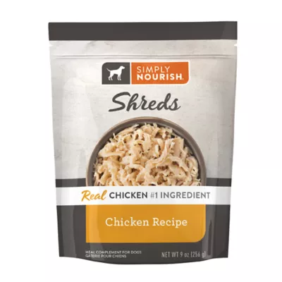 Top of your dog's meal in delicious style with Simply Nourish Chicken Recipe Meal Topper. This tasty topper comes in shreds, and is a favorite of dogs everywhere because it features the great taste of chicken in each and every bite. Only at PetSmart.