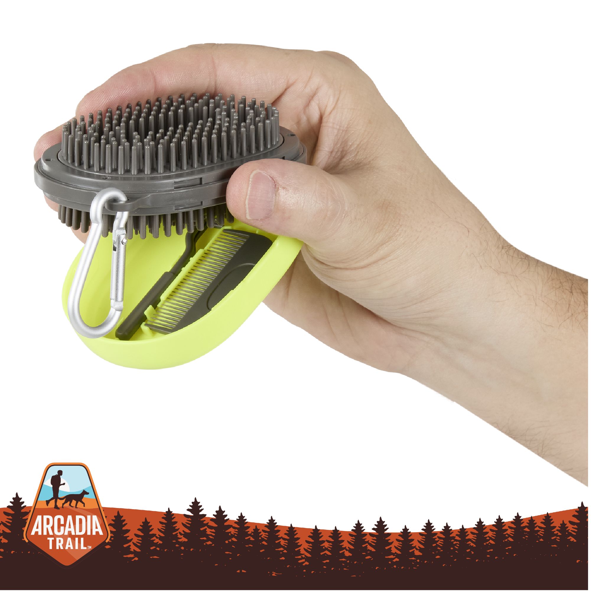 Keep your dog's paws clean and their hair soft and untangled while out on the trail with this Arcadia Trail® Paw Cleaner & Brush. This unique piece makes a wonderful addition to your outdoor gear, and features soft and durable bristles to remove dirt, mud and other debris from the paws and coat. Only at PetSmart.