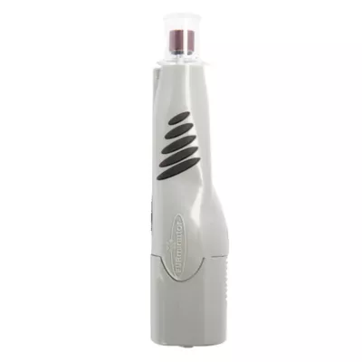 The FURminator Nail Grinder for dogs and cats is a lightweight, cordless grinder that files and smooths nails with ease. This compact, 2-speed grinder features an easy-grip handle for safe, secure trimming and an LED light that illuminates the nail. An anti-microbial plastic finish helps keep germs and bacteria to a minimum. This tool includes two replaceable grinding bands (additional replacement bands sold separately) and 4 AA-alkaline batteries. Replace the grinding band when it appears worn or when it becomes more difficult to file your pet's nails. Pets need their nails trimmed on a regular basis, usually monthly. Untrimmed nails can affect the comfort and overall health of your pet. Untrimmed nails can cause pets to develop sore feet, legs and hips, well as general discomfort.