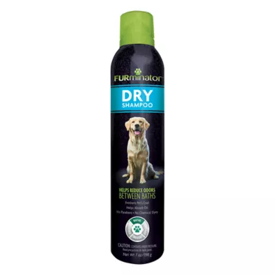 If you live with pets, you live with pet hair. FURminator professional-grade grooming solutions make the pet owner's home happier by dramatically reducing loose hair from the undercoat. Our deShedding tools, grooming tools and hair solutions offer a grooming regimen catered to any dog or cat. FURminator Dry Shampoo helps reduce odors between baths to freshen your pet's coat. With no parabens or chemical dyes, this dry shampoo helps absorb oil and freshens fur. Contains a fresh scent to leave your dog smelling fresh from the groomer. You and your pup will both appreciate this waterless option for use in between baths. Shake FURminator Dry Shampoo very well before use. Spray 2 to 3 inches away from pet's coat and allow several seconds for the product to absorb, then gently massage into your pet's coat with your finger and/or brush - no rinsing required. FURminator Dry Shampoo is for topical use on dogs over 6 weeks old. Avoid contact with eyes. Use with other FURminator grooming products as part of a complete regimen for professional-quality, at-home grooming results: Brush daily to detangle and smooth fur; deShed weekly to reduce shed hair; and bathe monthly to promote healthy skin and coat while reducing shedding.