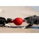 Description: Get ready for a game of fetch by lobbing the Tug–n–Toss ™ away from your dog! This toy requires no inflation as it floats through the air and darts wildly around the ground upon impact. Constructed of our signature JollyFlex ™ material, The Tug and Toss ™ will not deflate, even if punctured by your pup! The handle makes it easy to retrieve the toy from the jaws of a prideful pooch that won't let go.