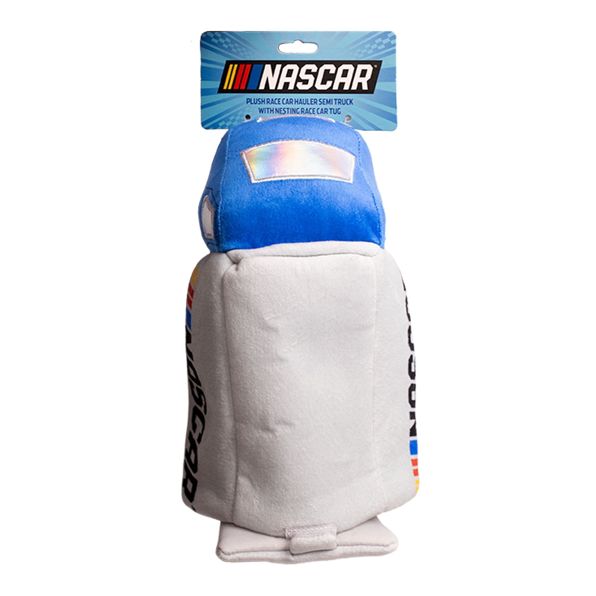 Description and Overview: Officially licensed NASCAR stock car dog toy offers soft plush for squeaking and snuggling plus an added rope tug out the back for exciting tug-of-war play.