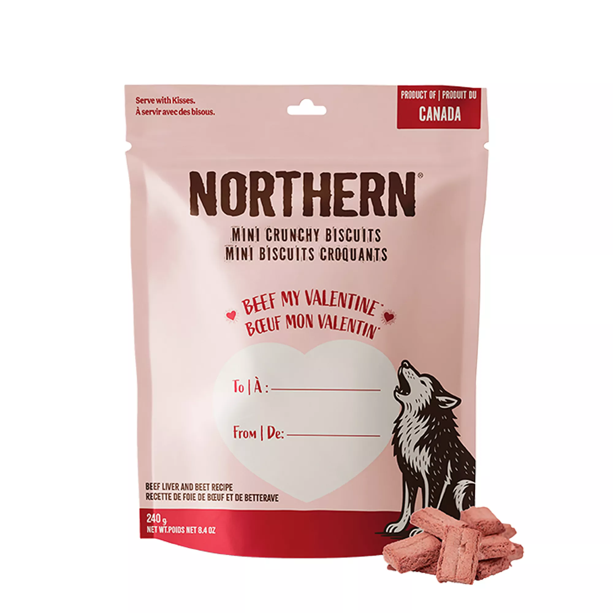 Northern Mini Crunchy Dog Biscuits "Beef My Valentine", Beef Liver & Beet Recipe, 240g