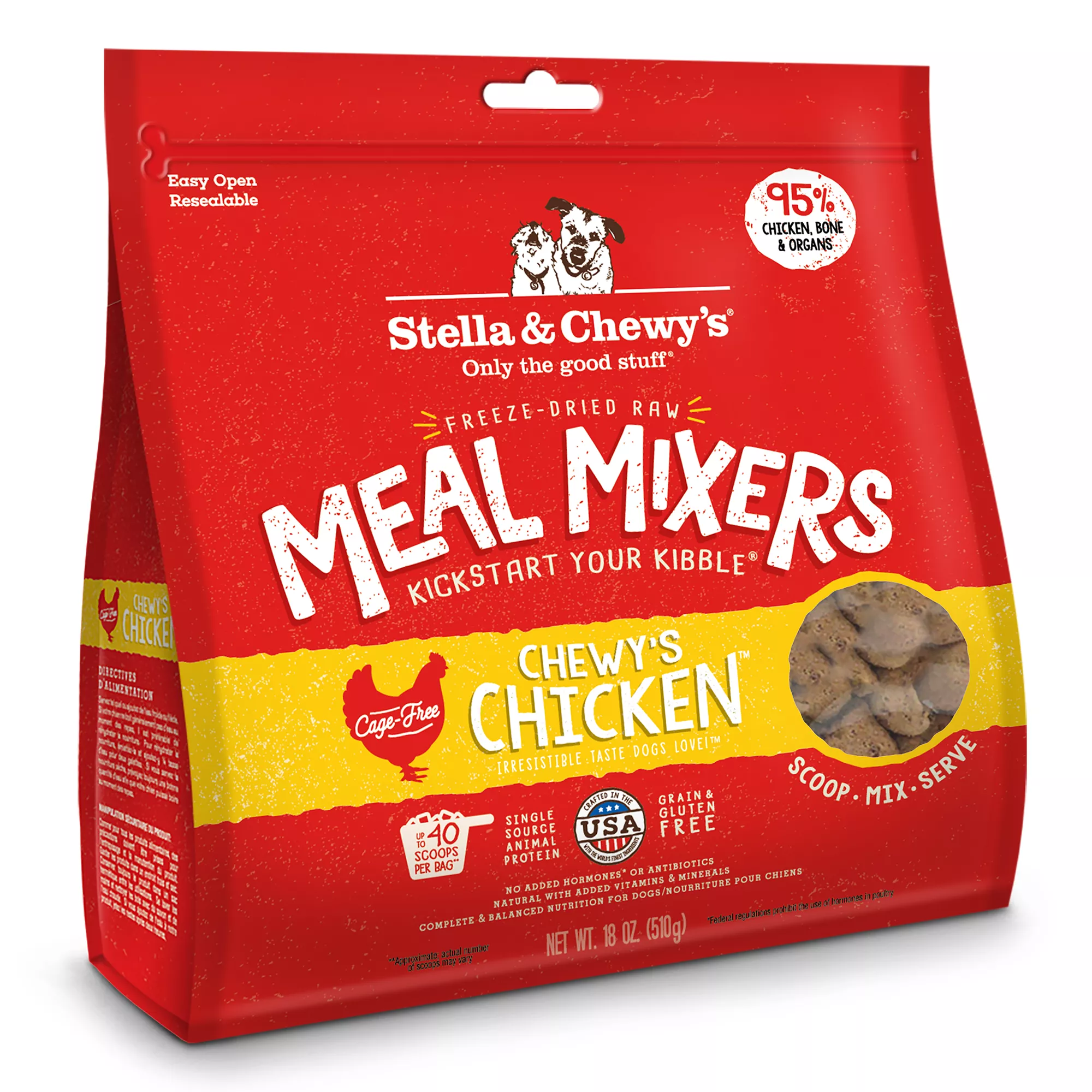 Want the benefits of raw feeding made easy? Stella & Chewy’s freeze-dried raw dog food is the perfect solution. Made with 95% meat, organs and bone—our nutrient-rich recipes mirror what dogs would eat in the wild. Plus, they’re shelf-stable and easy to serve, giving your pup the power of raw without the hassle.