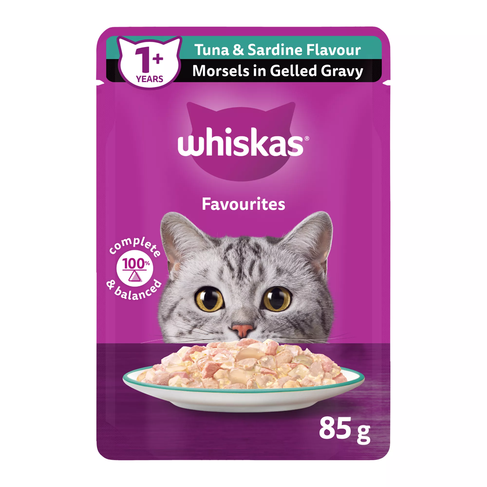 WHISKAS Favourites Adult Wet Cat Food Morsels In Gelled Gravy - Pouch, 85g