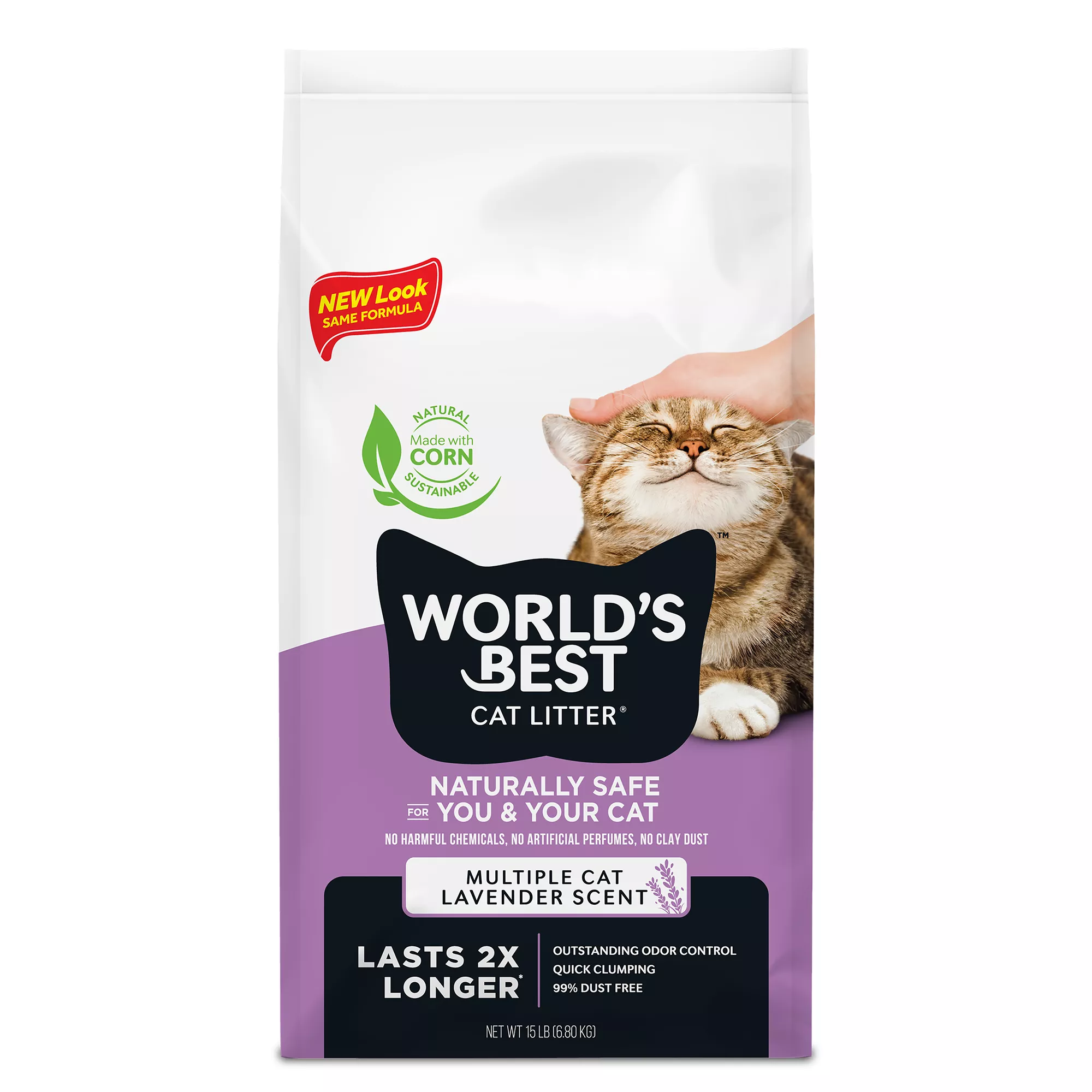 World's Best Cat Litter Lavender Scented Cat Litter - Flushable, 99% Dust Free, Clumping, 15 LB