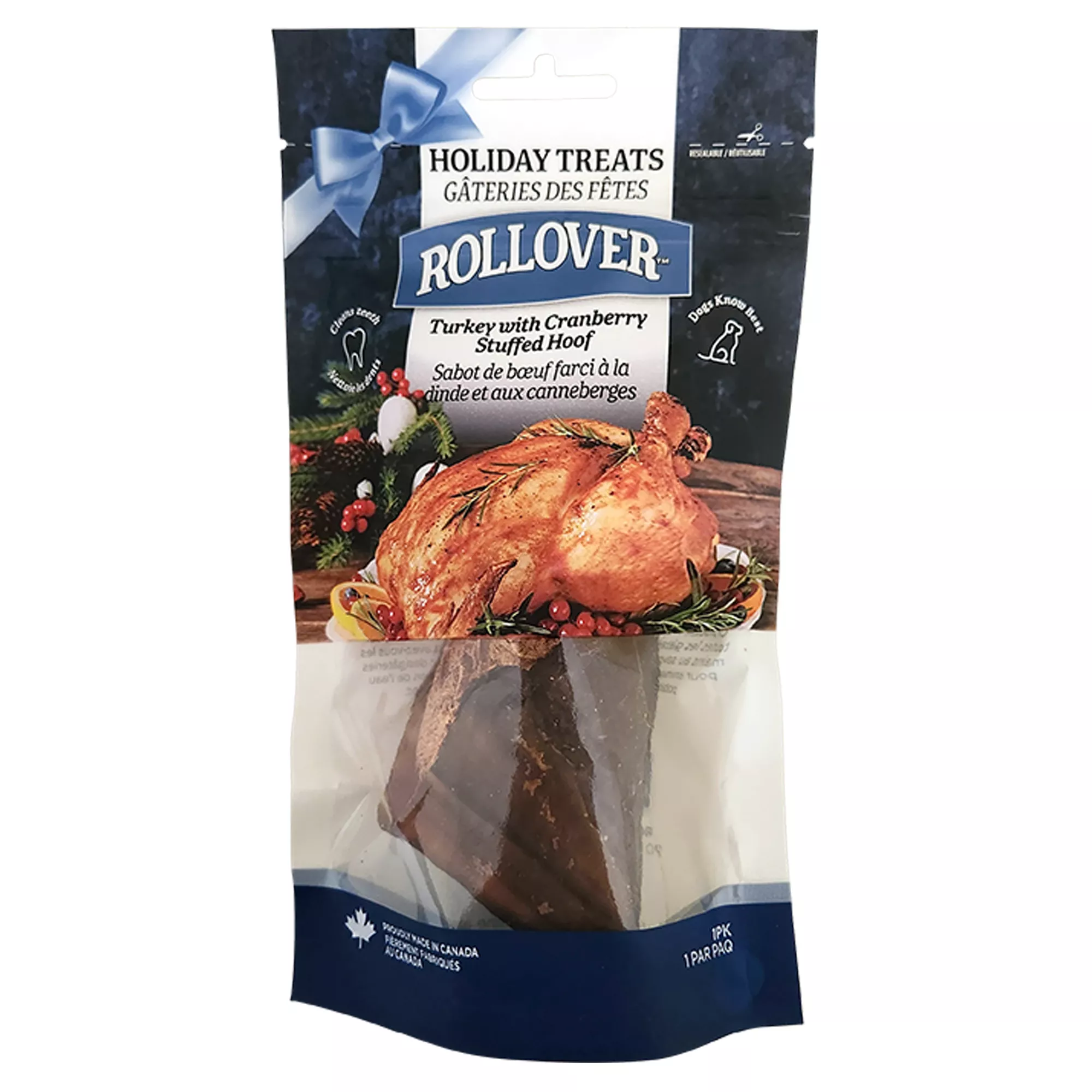 Rollover Dog Chew - Turkey and Cranberry Stuffed Hoof, 1pk