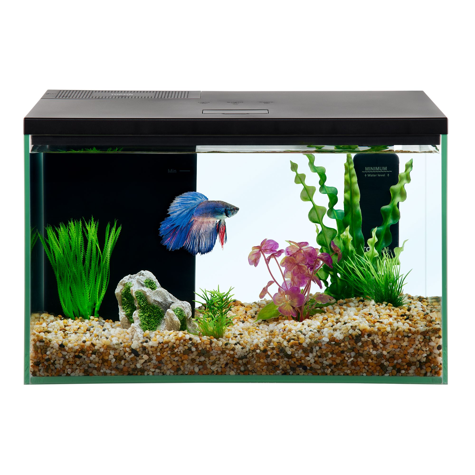 This Top Fin Trapezoid Aquarium allows for beautiful views of your underwater world. This aquarium holds up to three gallons, and comes with Bright White LEDs as well. Top Fin Underwater Worlds aquariums invite you to dive deeper as you build your own personalized aquatic environment, all while we guide you through setup, care, and maintenance. Only at PetSmart.
