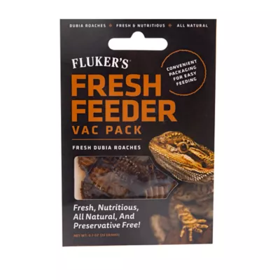 Fluker's Fresh Feeder Vac Pack Dubia Roaches are all-natural and great for bearded dragons, aquatic turtles, geckos, and all insect-loving reptiles. The insects are sterilized to remove parasites and bacteria. This process maintains the nutritional value of the insect without preservatives, which ensures that your pet has a fresh, nutritous, and safe treat.