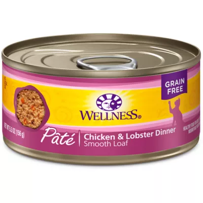 CHICKEN AND LOBSTER PATE: This healthy, natural food for adult cats is an excellent source of high quality proteins with real meat as the first ingredient, packed with vitamins, minerals, and essential fatty acids for complete, balanced nutrition. Pate is completely smooth for an irresistible taste your cat will love.SUPPORTS HEALTHY HYDRATION: Wet food is an easy way to increase your cat's moisture intake for daily hydration health. We recommend feeding cat food at room temperature and refrigerating the unused portion.NO CORN, WHEAT, OR SOY: Cat food doesn't contain added carrageenan, wheat, wheat gluten, corn, soy, artificial colors, or preservatives.COMPLETE & BALANCED NUTRITION: Wellness cat food is created by nutritionists & veterinarians to nourish and sustain your pet's wellbeing.Species: Cat