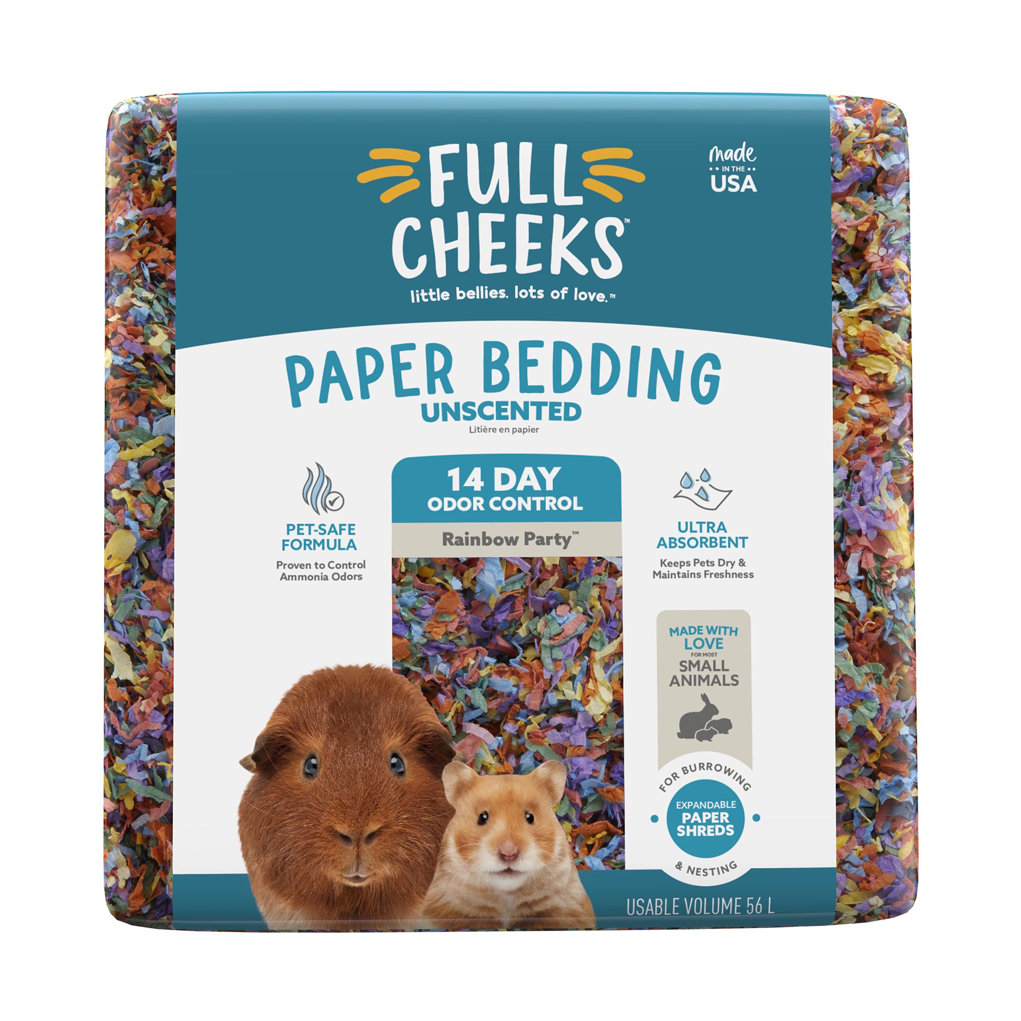 We believe caring for your furry little one should be as easy as loving them, and now it can be. Made with love for small animals like yours, our soft, ultra-absorbent, clean and comfy Full Cheeks® Unscented Paper Bedding leaves their paws dry and cushioned and their habitat cleaner for you. Now all they need to do is what they do best: Give lots of love.
